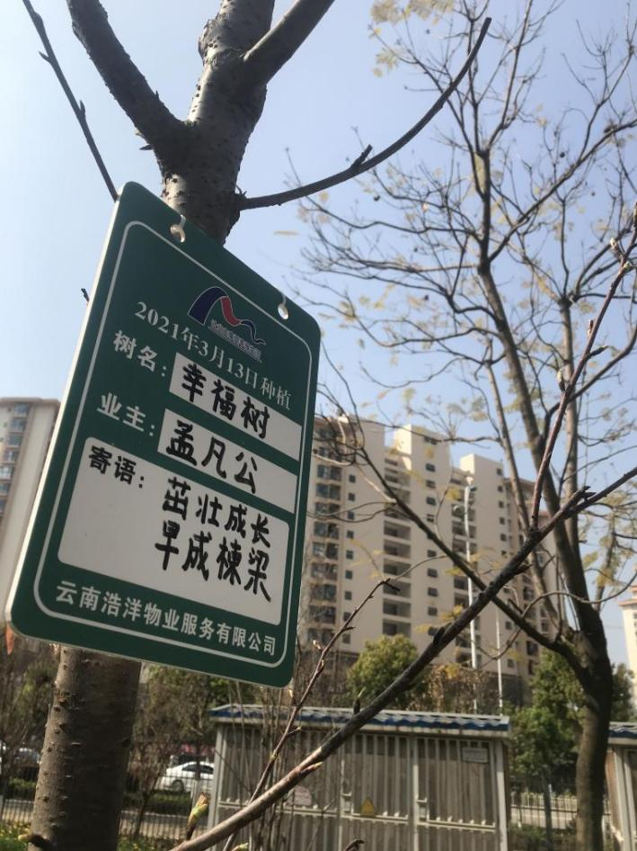 俊?;ǔ?、廣電苑、滇池潤(rùn)園項(xiàng)目,同時(shí)于2021年3月13日星期六早晨10點(diǎn)展開(kāi)了植樹(shù)活動(dòng)?;顒?dòng)當(dāng)天,業(yè)主至活動(dòng)地點(diǎn),免費(fèi)領(lǐng)取櫻花樹(shù)苗,在物業(yè)工作人員的指導(dǎo)下進(jìn)行栽種,掛上吊牌。