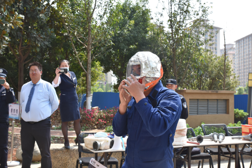 活動正式開始后,有序進行了消防逃生演練、典型火災案例分析、滅火器、自動報警器及消防面具等器材的正確使用和注意事項講解。